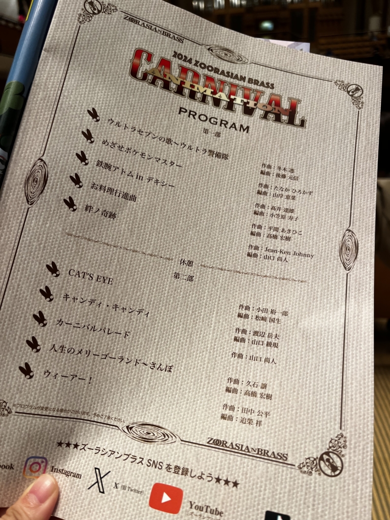 4/13(土)、所沢市民文化センターミューズにて開催された「ズーラシアンブラス・アニメ・カーニバル」に行ってきました!